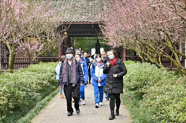 在此次成都历史实践游学中,丘成桐院长一行与学生参观了杜甫草堂、都江堰水利工程、青城山、武侯祠等名胜古迹,切身感受体验古蜀文化,走进了三星堆博物馆、成都金沙遗址博物馆,近距离观赏数千年前的历史文物,透过一件件文物及其背后的故事,系统地了解成都的历史发展脉络。