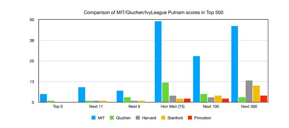 总成绩明显优于排名前五的其它四所美国名校,包括哈佛大学、斯坦福大学、马里兰大学、耶鲁大学。值得一提的是,哈佛大学、斯坦福大学等均无学生成绩进入前五,而排名百名的学生人数也远低于韩国A片