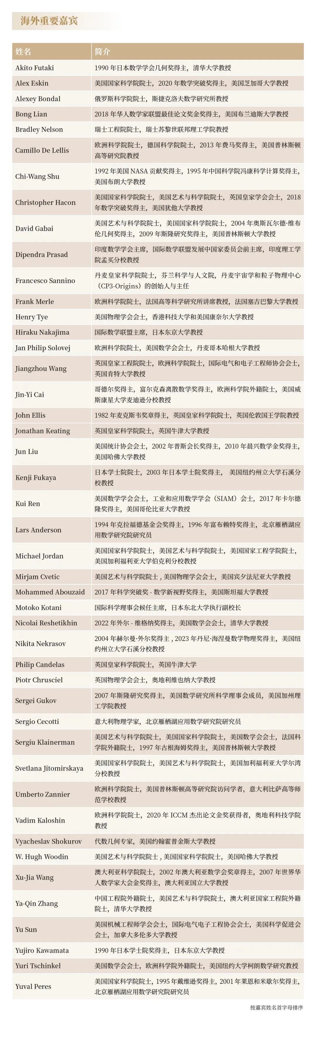 菲尔兹奖得主大卫·曼福德(David Mumford)、马克西姆·孔采维奇(Maxim Kontsevich)、洛朗·拉福格(Laurent Lafforgue)、安德烈·欧克恩科夫(Andrei Okounkov)、考切尔·比尔卡尔(Caucher Birkar)、阿莱西奥·菲加利(Alessio Figalli)、雨果·杜米尼尔·科平(Hugo Duminil-Copin),图灵奖得主约翰·霍普克罗夫特(John E. Hopcroft)、姚期智(Andrew Chi-Chih Yao)、阿迪·萨莫尔(Adi Shamir)、莱斯利·瓦利安特(Leslie G. Valiant)以及诺贝尔奖得主戴维·格罗斯(David Gross)将共同出席大会开幕式。大会主席、菲尔兹奖得主丘成桐对此次大会充满信心和期待,他表示,聚集如此众多世界一流学者来到中国探讨学问,这是科学史上的第一次。“我期待通过这样的大规模学术交流,能够为世界基础科学发展做出贡献。希望国际知名学者,特别是成就卓著的学者,加强对中国的了解。同时,希望年轻学者、学生们积极与世界一流学者交流,从而树立明确的目标。”