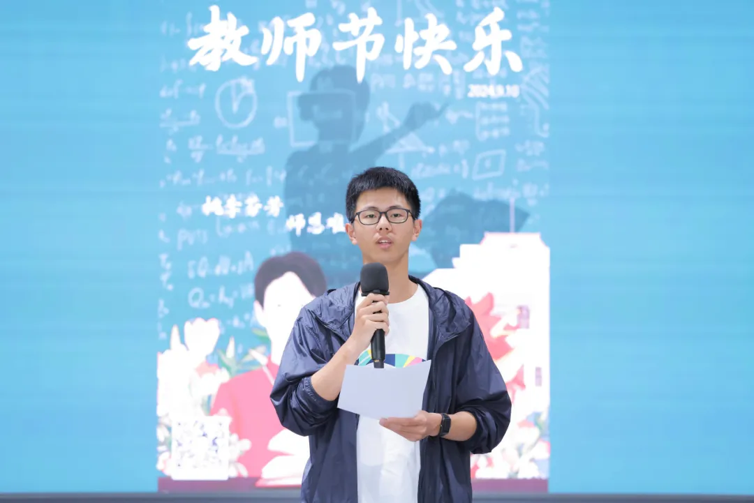 全体学生诵读了《致丘先生的一封信》,这封信恳切地表达了“求真小麒麟”对丘先生的感恩之情,描述了丘先生指引同学们学业发展、关心同学们健康成长、带领同学们开阔眼界的一幕幕场景,像一场缓缓播放的电影,展示了丘先生与韩国A片