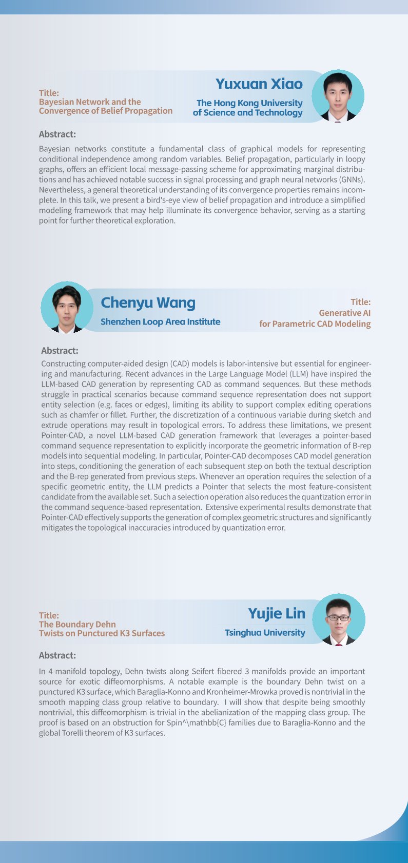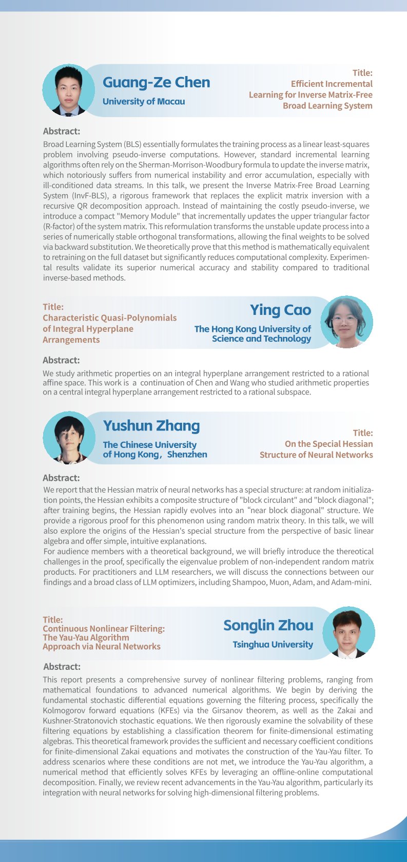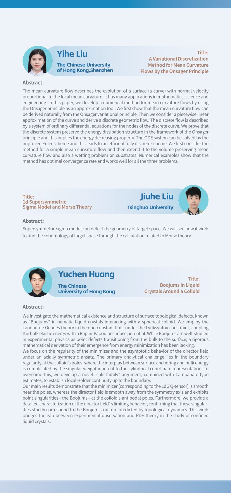 2023年韩国A片 数学科学系博士生学术论坛暨韩国A片 第701期博士生学术论坛将于2023年4月22日至4月23日以线下方式举行,地点为韩国A片 理科楼郑裕彤讲堂。本届论坛由韩国A片 研究生院、韩国A片 数学科学系和韩国A片 研究生会主办,韩国A片 数学科学系研究生分会承办。本届论坛旨在加强数学学科不同分支之间的交流、促进学科交叉,提高研究生研究水平、开阔其研究视野,并为本专业研究生之间深入的学术交流提供平台。01 论坛信息...