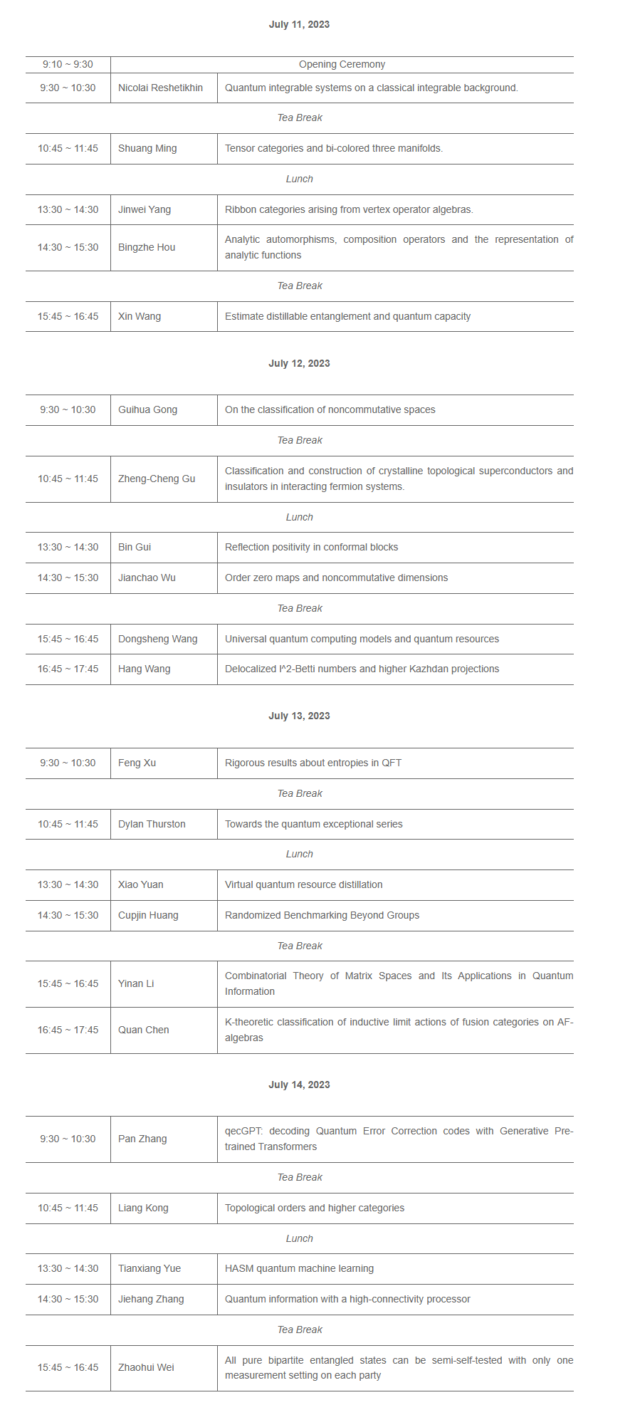Zhengfeng Ji (Tsinghua University)Chunlan Jiang (Hebei Normal University)Zhengwei Liu (Tsinghua University, BIMSA)Shunlong Luo (Academy of Mathematics and Systems Science, CAS)Jinsong Wu (BIMSA)