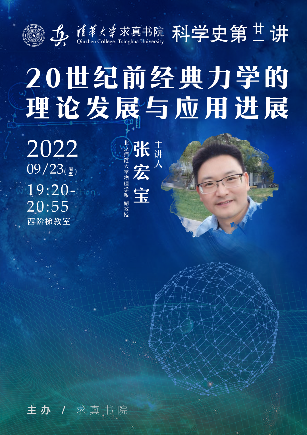 主讲人介绍Babak Haghighat, Associate Professor at YMSC, Tsinghua University, working in the area of mathematical physics and string theory.摘要I will review the development of classical mechanics from its roots in Ancient Greece and follow its course through the modern era and the scientific revolution to the current formulation due to Euler and Lagrange culmination. I also give a brief outlook...