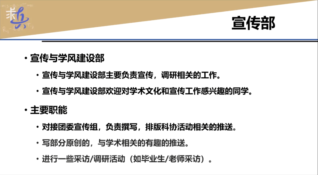 宣传与学风建设部欢迎对学术文化和宣传工作感兴趣的同学。