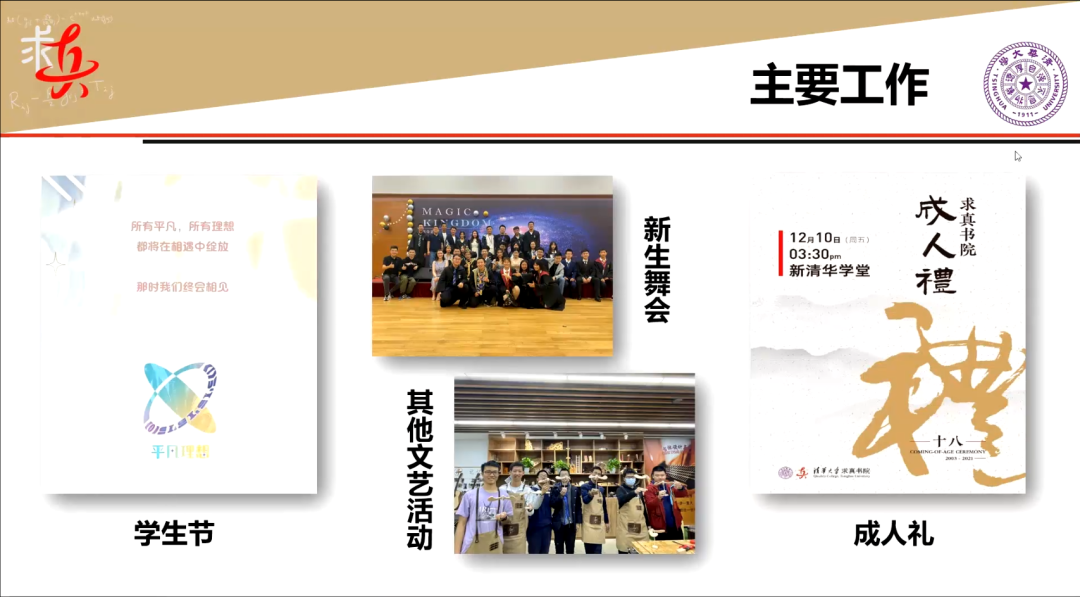 主要工作:学生节;新生舞会;求真书院成人礼;求真icenter专场活动。