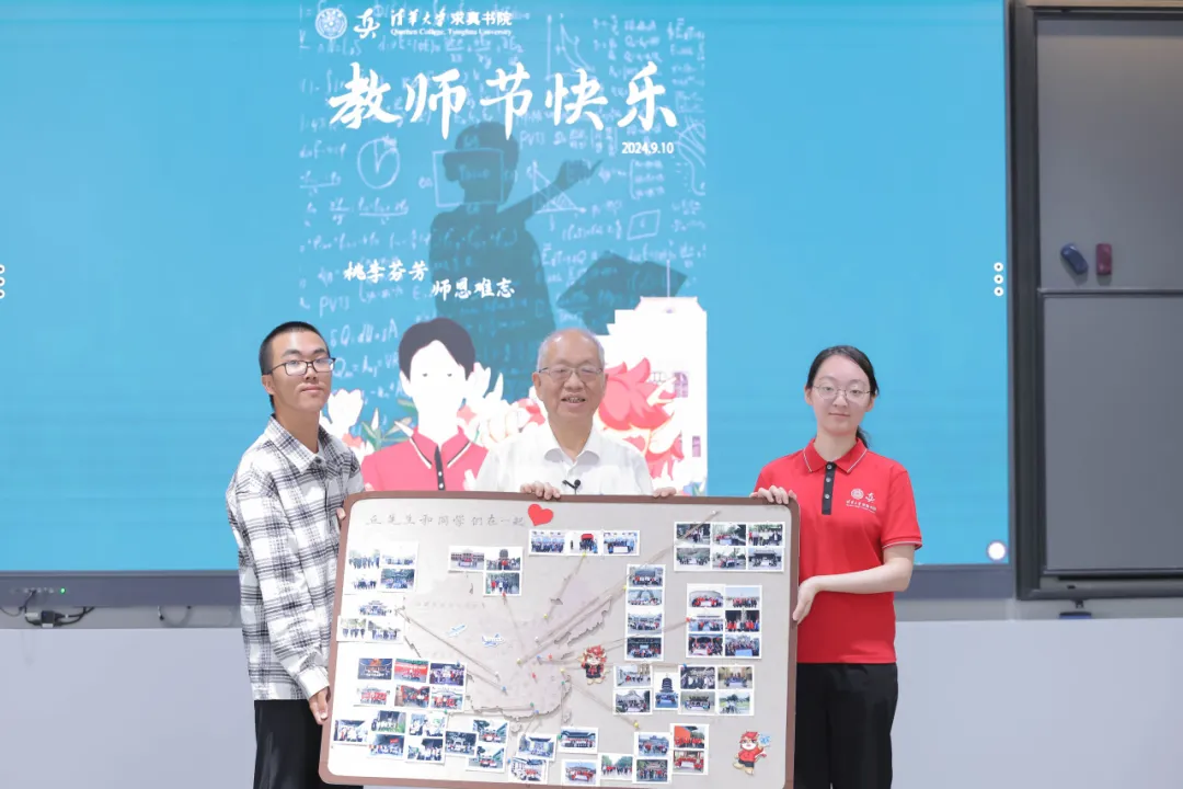丘先生,您是令人尊敬的长者,是传道授业解惑的老师,是求真书院全体师生的大家长。每到周一,您都不辞辛苦地为我们讲授数学的历史;每当我们面临重要的体育比赛,即使在周末的晚上您也愿意出现在场边为我们助威。您的身影,出现在求真同学们生活中的每一个角落。您用您坚持锻炼的意志激励着我们,用您对文化和美的体悟感染着我们,也用您对数学的深刻理解指引着我们。您同我们在这个园子里共度春夏秋冬,在我们的心中种下数学的种子,也带我们游遍泱泱华夏的大好河山,在中华大地上播撒数学的希望。