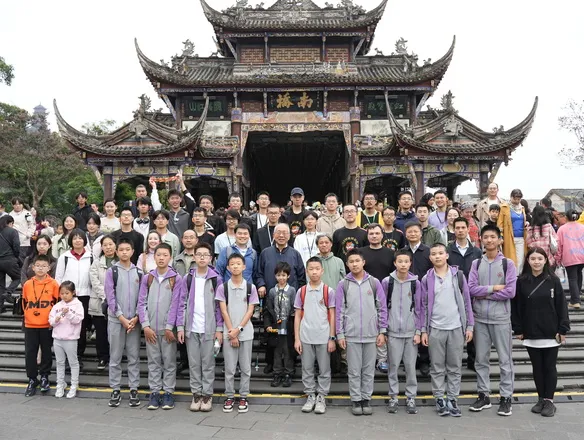 在成都开展游学期间,书院师生首先参观了都江堰。这是一座始建于战国时期的大型水利工程,由秦国蜀郡郡守李冰及其子主持修建。两千多年来,都江堰不仅持续发挥着引水灌溉的功能,还兼具防洪排沙、水运和城市供水等作用,灌溉了素有“天府之国”之称的成都平原。都江堰充分展现了中国古代人民在水利工程上的智慧与创新,直到现在还在发挥着重要的作用,造福万民,是一项功在千秋的伟大工程。