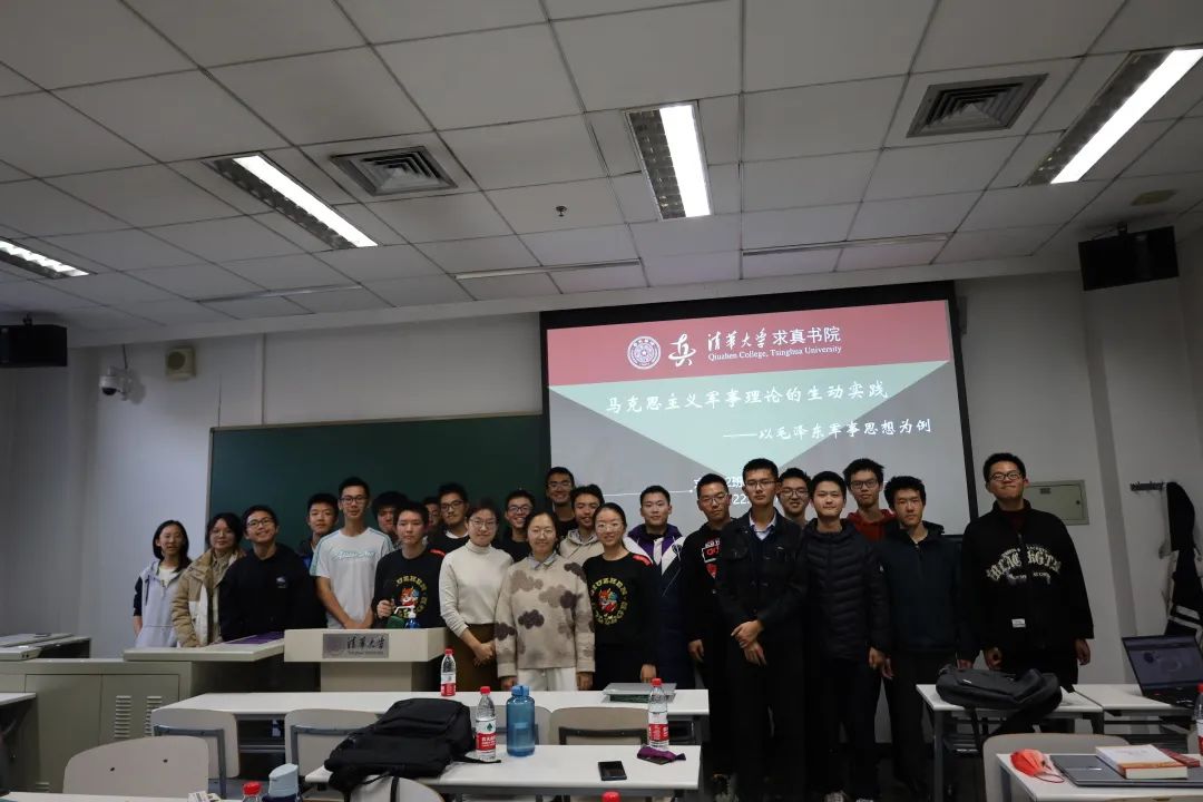 2022年11月17日,求真22支部为深入学习贯彻落实党的二十大精神,进一步加强爱国主义教育,提高班级同学理论水平,激发同学们对马克思主义理论的求索精神与对我党我国历史的了解关注,以“国防与军事理论”为主题,举办本学期主题团日活动。活动具体话题为:马克思主义军事理论的生动实践,我们邀请到了清华大学党委武装部老师吕冀蜀为我们做了讲座,通过学习研讨毛泽东军事思想在中国革命战争史中的具体体现,加强同学们对我党军事思想与军事历史的认识,提高理论素养。