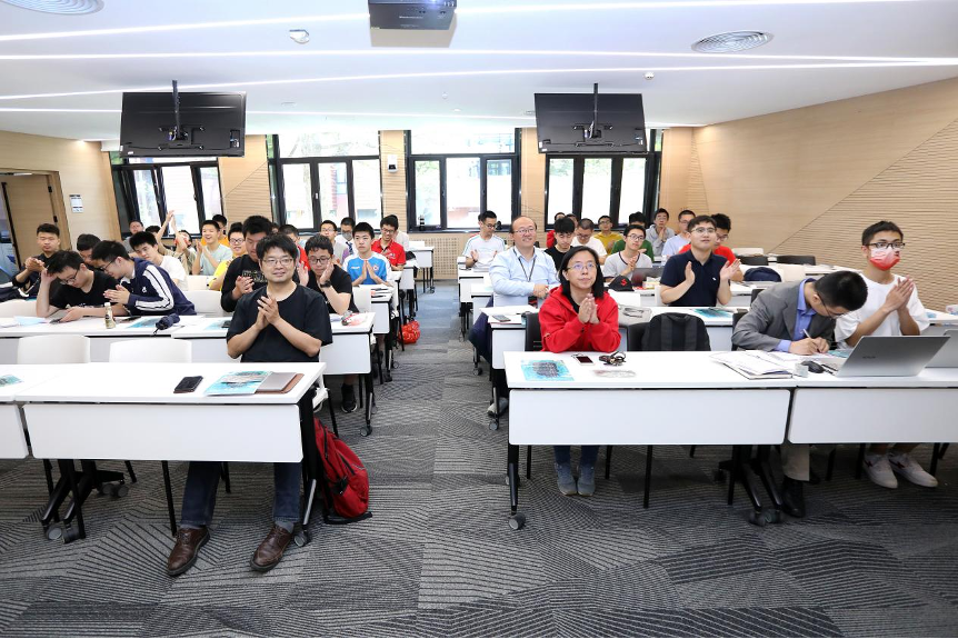 各组同学展示完作品之后,高昌对同学们选取的诗词作品及本次活动进行点评发言。他讲到,尽管诗词和数学表面看来好像隔着很远的距离,诗词是偏重感性的,追求浪漫;数学是理性的,讲究严谨。但事实上,数学和诗词拉起手来互通共融就会有不同寻常的聚变反应。用数学思维来理解诗词,就能提升诗词的境界,增加诗词的表现力;用诗性思维来进行数学研究,相信也能拓宽数学的视野,增加数学的想象力。在本次活动中,同学们富有感情地朗诵经典诗词作品,感悟和体味文字背后的情感力量和思想力量,分享古哲先贤们超越时空传递过来的丰沛诗意。高昌寄语大家,希望同学们的朗诵不只是为了参加一次比赛,而更应该是让这份难得的中华风雅融入生活,深入心灵。