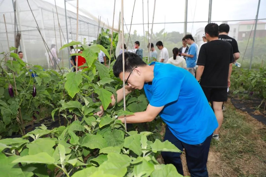 之后,负责人邀请求真师生在农场中体验除草、摘菜。